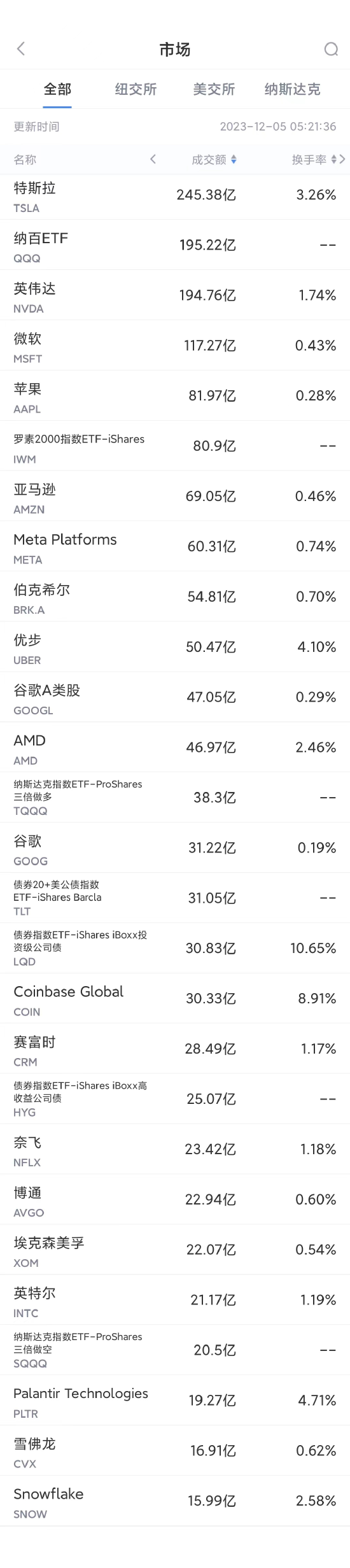 周一美股成交额第1名特斯拉收跌1.36%,成交245.38亿美元。乘用车市场信息联席会(乘联会)12月4日发布数据显示,预估特斯拉中国11月批发销量为82432辆,同比下滑17.8%、环比增长14.3%,位列第二。排名第一的是比亚迪,11月批发销量达301378辆,同比增长31%。